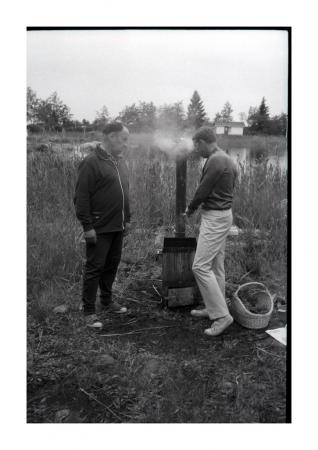 Två män vid rökugn