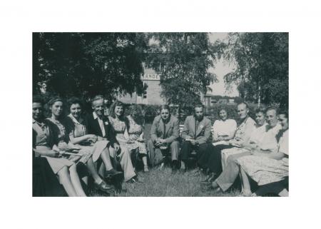 Gruppdiskussion utanför Bygdegården. I mitten danska Jensen och gruppledaren Magnus Kull.