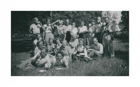 Ungdomsläger, större grupp på gräsmatta
