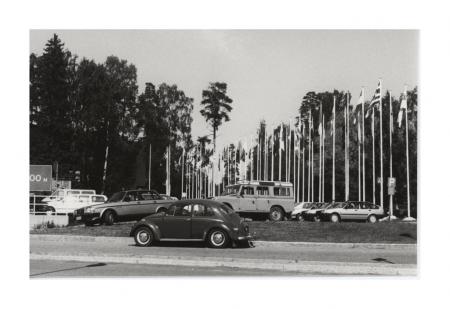 Parkeringsplats med flaggstänger